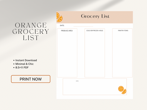Orange Citrus Grocery List Template