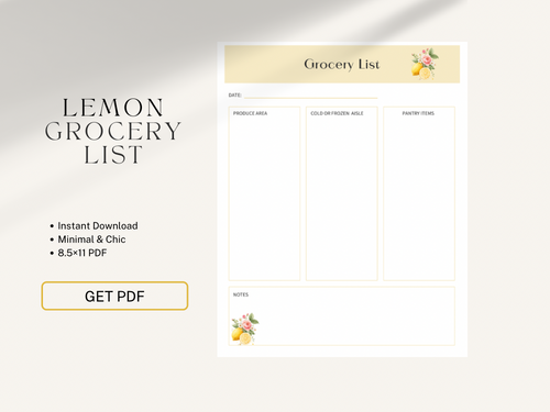 Modern Lemon Grocery List Printable – 8.5×11